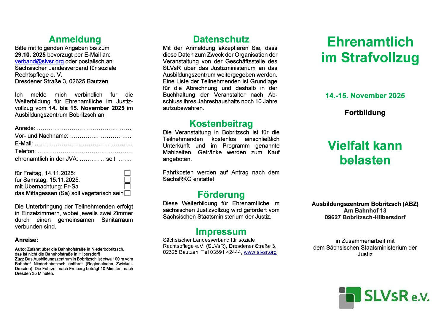 Die Veranstaltung steht unter dem Motto „Vielfalt kann belasten“ und findet vom 14. bis 15. November 2025 in Bobritzsch statt.